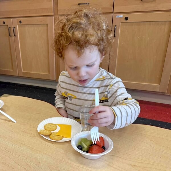 Our toddler rooms start the day with small group welcoming activities. Children will be served breakfast in their rooms at 8:00 am. After breakfast, toddlers will explore the outside time and then exploration time in the classroom. Lunch is served around 11:30 and rest time between 12:30 to 3:00 pm. After a nap, our day starts all over with snack time, outside time and exploration time. Our toddlers will have potty time or diaper time throughout the day.